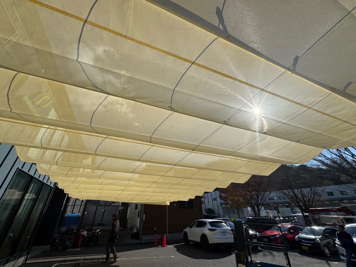 園庭・グランド以外にも、自動車展示場に設置することで、展示車を紫外線による劣化から守ることができます。